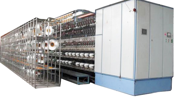 主要配置 1.主機(jī)由車頭部件、機(jī)架部件、第一喂入羅拉W1、第二喂入羅拉W2、輸出羅拉W3、卷繞羅拉W4、橫動(dòng)防疊部件W5、切絲和探絲部件、變形箱部件、上油裝置、供氣、水部件、電氣部件、絲架部件等組成。 2、全機(jī)兩側(cè)的W1、W2、W3、W4、W5為分別驅(qū)動(dòng),可設(shè)置不同工藝,同時(shí)紡不同品種。 3、全機(jī)每錠配2套探絲器,2套切絲器; 4、可選配竹節(jié)裝置; 5、絲架每錠4個(gè)絲位; 6、人機(jī)界面、PLC完成工藝參數(shù)的設(shè)置、修改、顯示、儲(chǔ)存,整機(jī)調(diào)速均由變頻器控制同步電機(jī)完成。